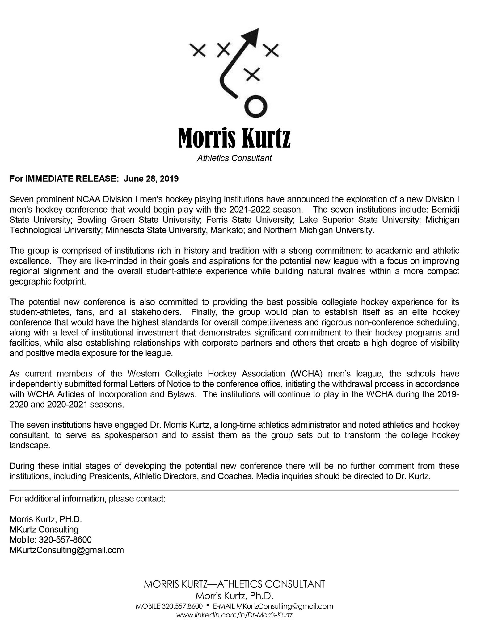 A group of seven WCHA teams, including Minnesota State, are exploring forming a new, "elite hockey conference" that would begin play in 2021-22, according to a press release sent out by athletics consultant Morris Kurtz, the former St. Cloud State athletic director.
